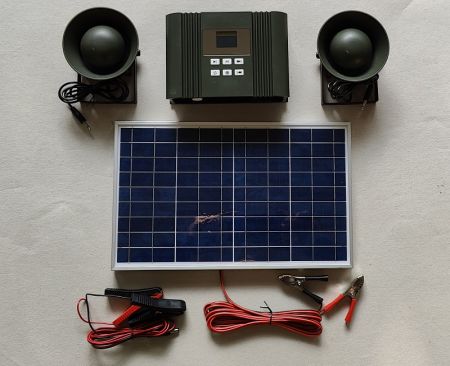 Τα Ηχητικά εφέ πουλιών σε κίνδυνο και οι ήχοι αρπακτικών πουλιών, είναι ικανά να φοβίσουν και να απομακρύνουν τα ενοχλητικά πουλιά, αλλά και γουρούνια ή άγρια ζώα. Η συσκευή αυτή φοβίζει όλα τα είδη ενοχλητικών πουλιών ΑΛΛΑ και ζώων από φάρμες, περιβόλια, μποστάνια, δενδροκαλλιέργειες και αγροτικές περιοχές, αμπέλια, φυτείες, και άλλες εκτάσεις, ιχθυοκαλλιέργειες, ΑΕΡΟΔΡΟΜΙΑ...